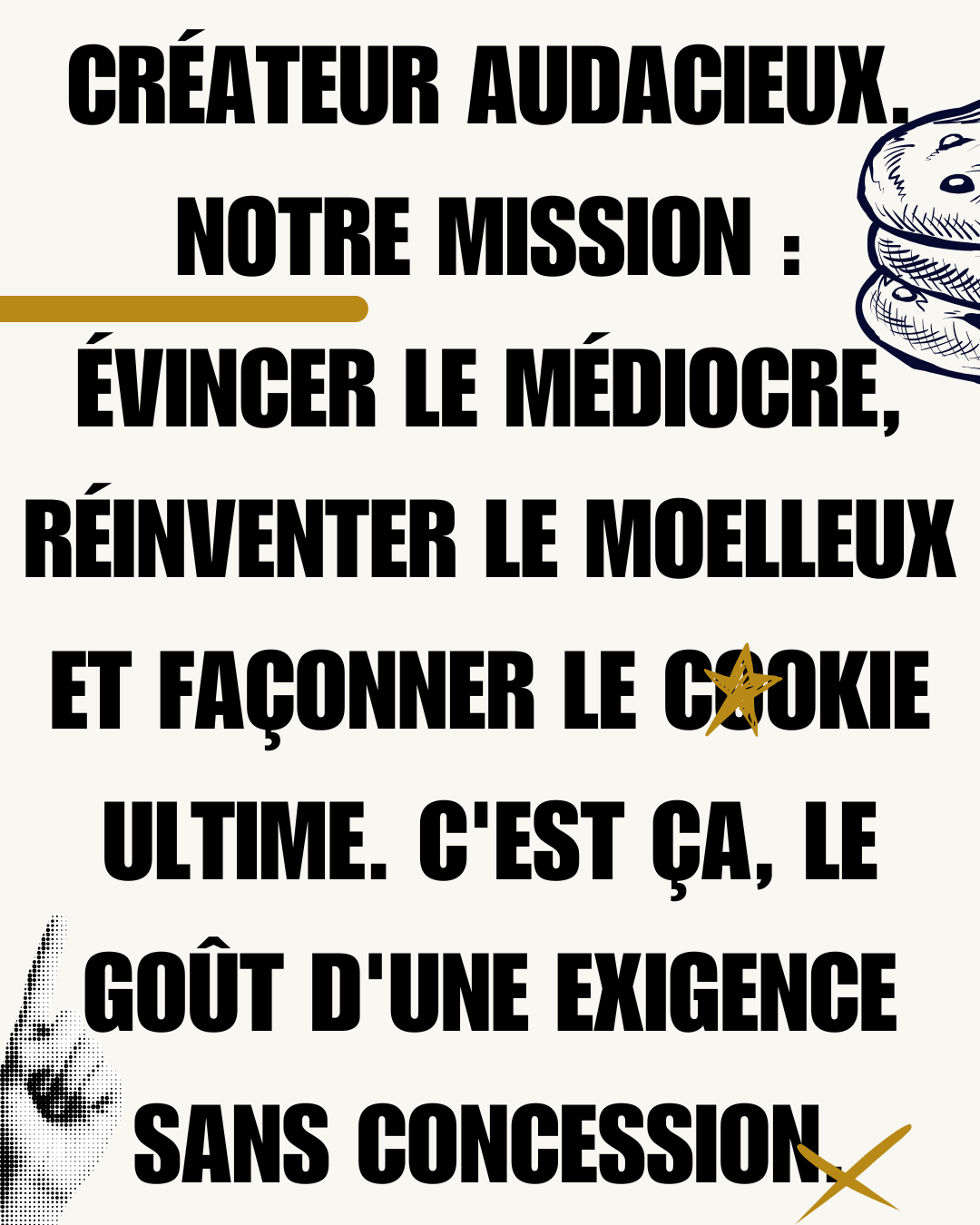 Nous ne faisons pas de compromis. Chaque recette est le fruit d'une recherche constante du goût juste. Bienvenue dans un monde où le cookie retrouve ses lettres de noblesse.